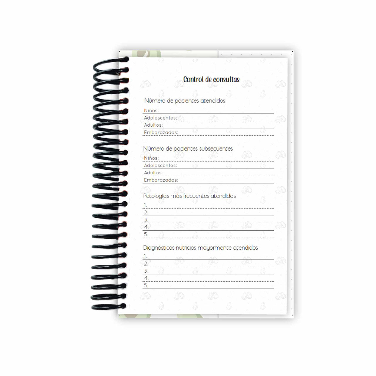 - Control de Pacientes: Incluye 14 páginas especiales para llevar un registro del número de expediente, nombre del paciente y diagnóstico. Ideal para mantener un control preciso.